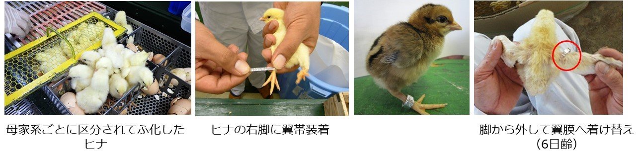 これは、家系(血縁)情報の把握と、体重や産卵率等のデータを個体ごとに収集するためです。