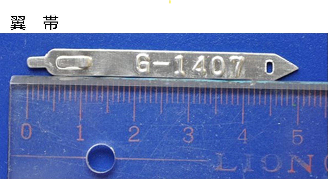 写真のように、翼帯は記号と数字が刻印されており、これを鶏に装着することで1羽ごとに個体を識別することが可能となります。