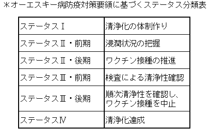 その結果、当農場が所在する「茨城県筑西市藤ヶ谷北部地区」は、平成21年11月の地域防疫協議会において、「ステータス4」(清浄化達成)に認定されました。