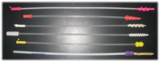 精液注入器(下の写真参照)には、ゴム、シリコンラバー、プラスチックなどの製品があり、形も様々です。雄豚の陰茎を模したスパイラル状のゴム製注入器は雌の生殖器を傷付けることがなく、精液も逆流し難い特徴があります。注入器は、滅菌生理食塩水又は5~6%ブドウ糖液で内部を洗浄します。