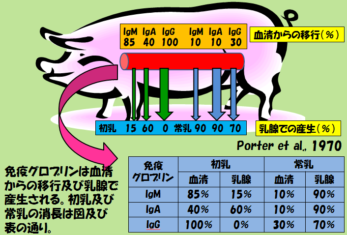 母豚の乳腺内で産生され、常乳中にも長期間持続して分泌される。