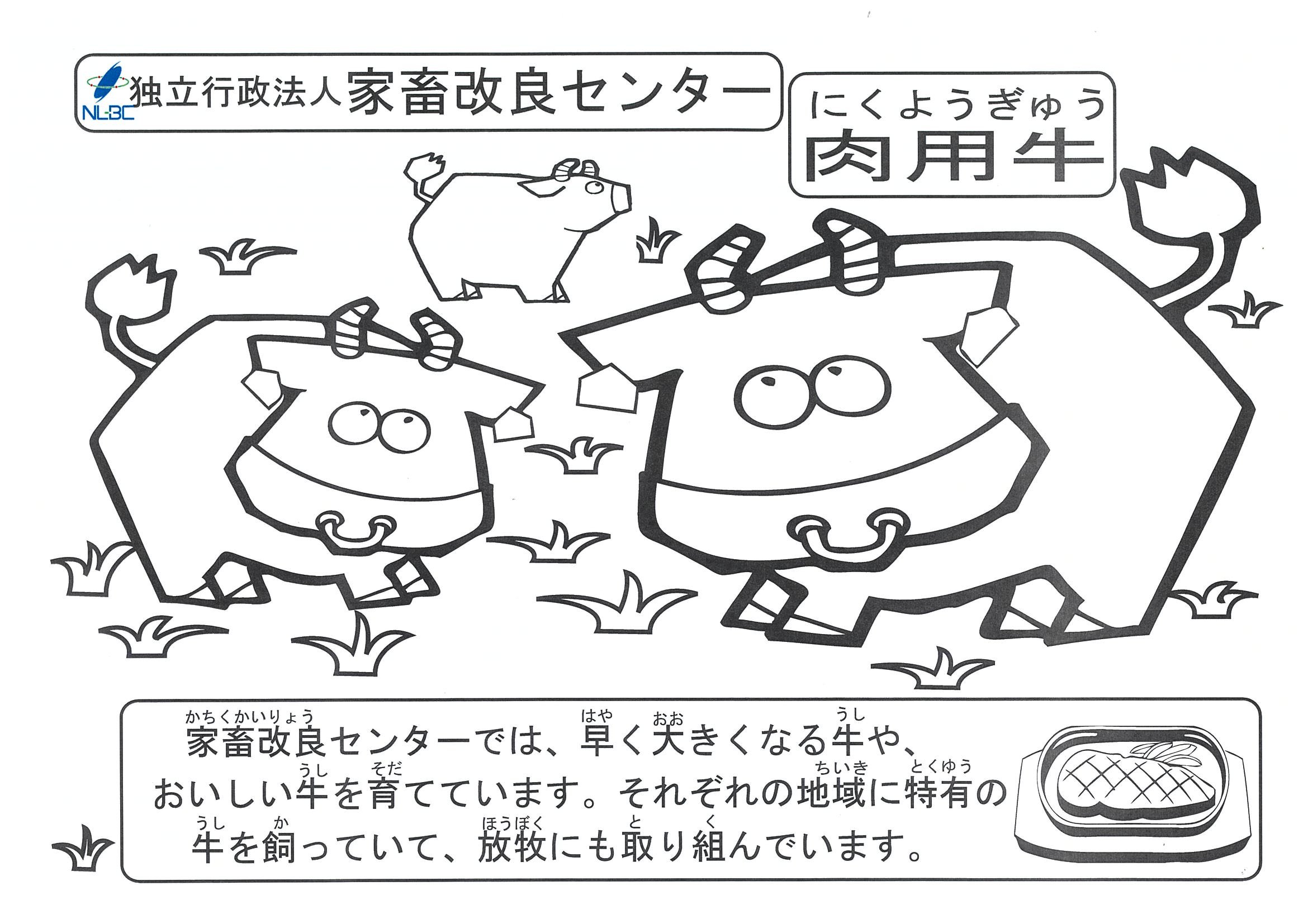 このコーナーは家畜に親しんでもらうための材料です。クイズ、ペーパークラフト、ぬり絵があります。掲載されているものの著作権は家畜改良センターにあります。無断での転載・商用利用はおやめください。