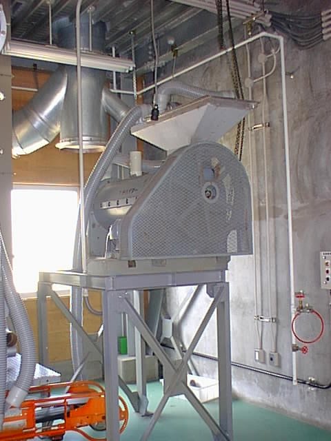 精選とは、乾燥させた収穫物から不純物を取り除く工程です。不純物とは茎葉の破片、小石、雑草の種子などです。こういった不純物を取り除くため、様々な機能をもった機械を使って精選を行います。