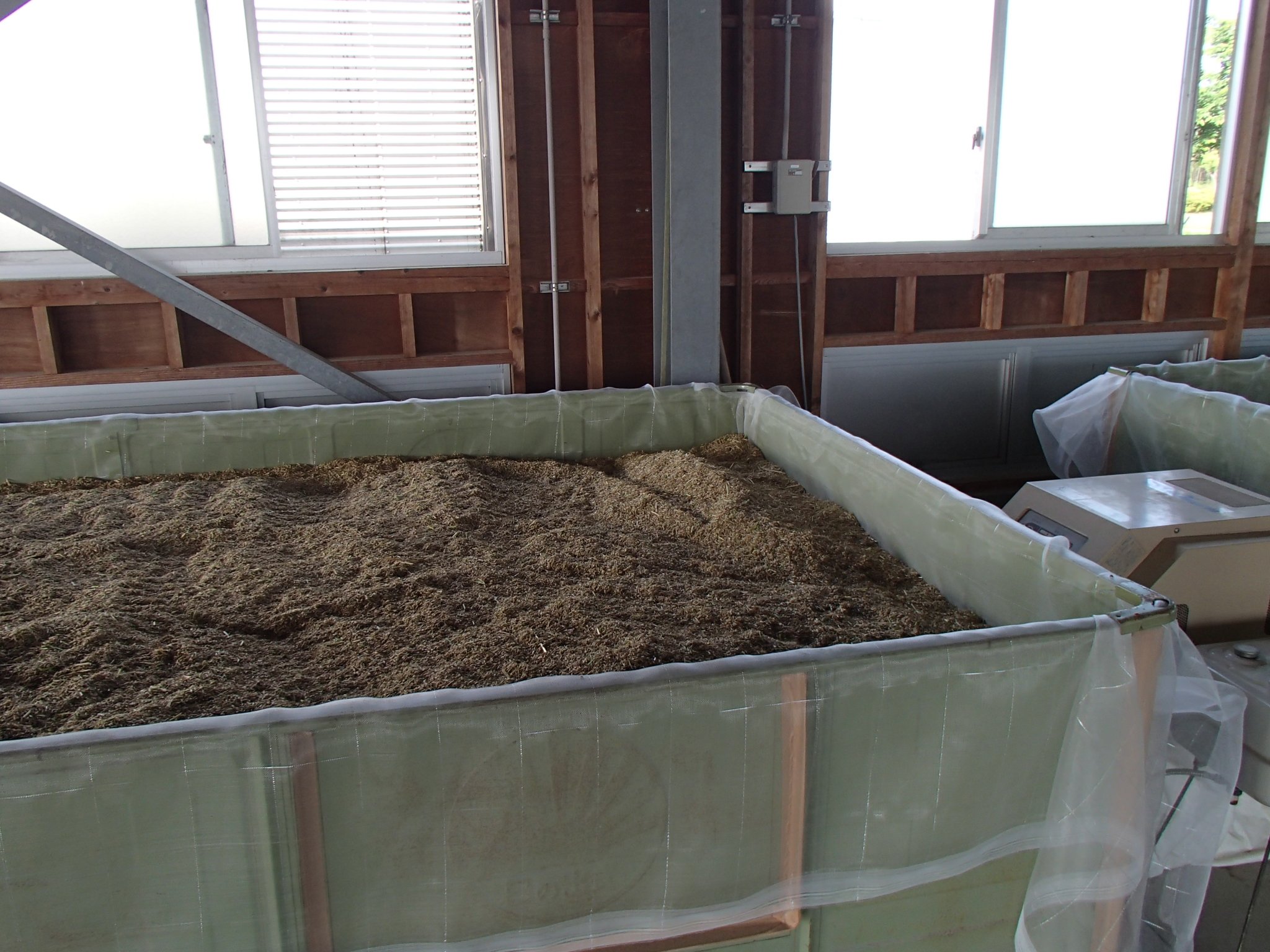 また、収穫時期は暑い時期である上に、収穫物が入るコンバインの中は熱がこもるため、収穫直後の収穫物は熱をもっています。