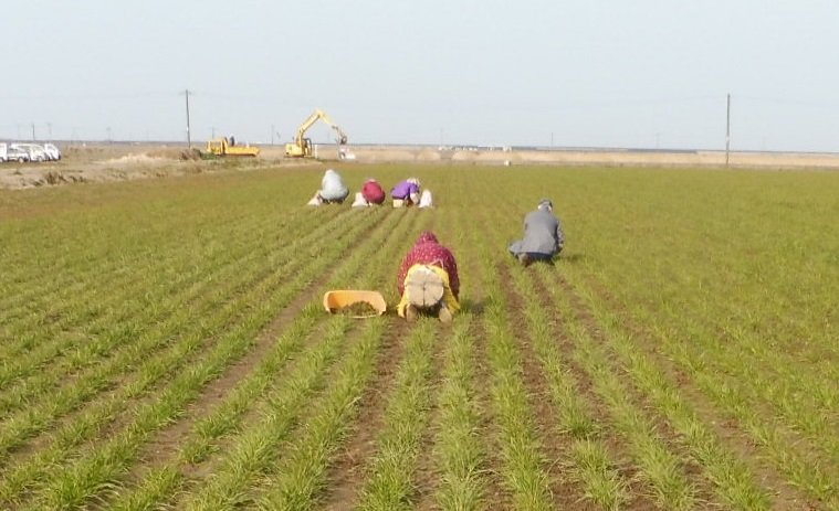 ・畝間に存在する「ボランティア」や採種ほ場内の「雑草」を手作業で除去します