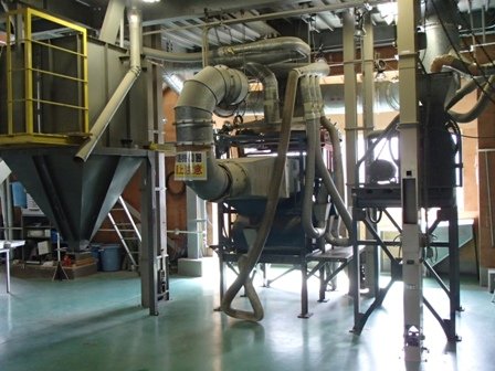 写真:熊本牧場の精選ライン(精選機の集合設備)