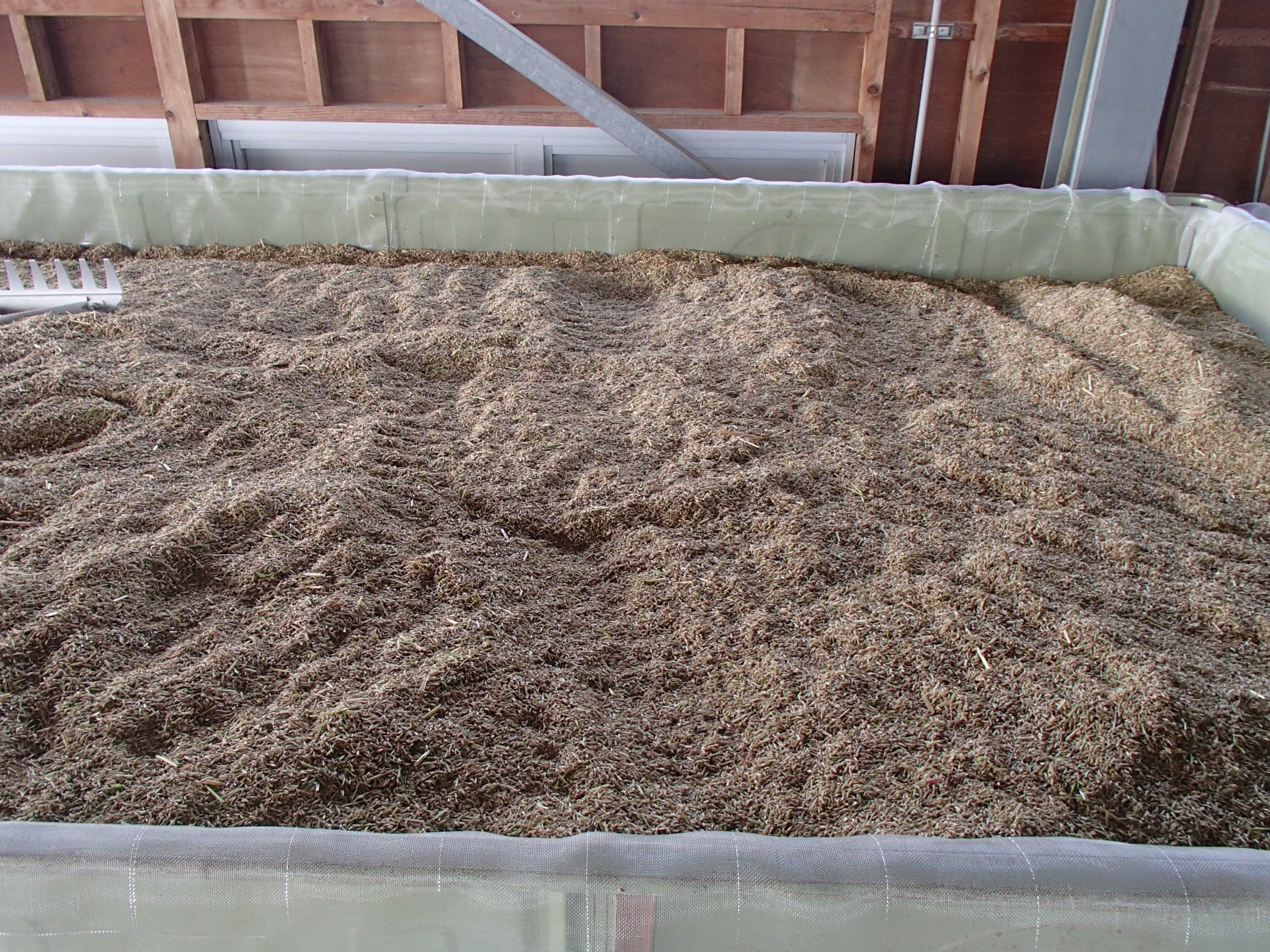 ほ場から収穫したばかりの種子は水分を多く含んでいます。たとえば、イタリアンライグラスでは収穫直後は50%前後の水分があります。