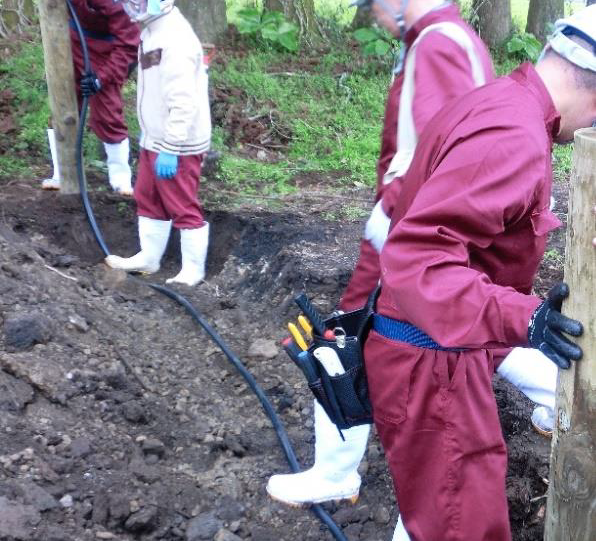 埋設したケーブルは、地上のワイヤーとつなげます。