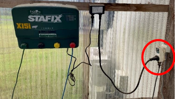 送電可能距離や電源の種類に応じて、適切な電気柵用電源装置(電牧器)を設置します。