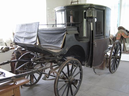 英国製で明治末期に購入された一頭引きの馬車です。当初は貴賓、高官などの来客の送迎や所長用として使用されていましたが、戦後は職員の冠婚、通院等にも広く利用されました。