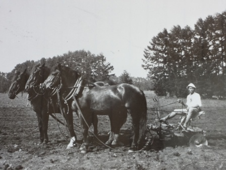 現在のように大型農機具のなかった時代には、人力と馬による飼料生産を行っていました。戦前は、馬の改良増殖が主要業務であったことから、牧草、とうもろこし、にんじん、えん麦といった飼料を生産していました。