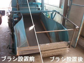 ロールブラシを鋼材などで固定し、収穫機に取り付けます。