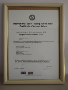 長野支場で行われる様々な種子検査は、この国際種子検査規程に従って行われています。また、長野支場はISTA Accreditation Standard for Seed Testing and Seed Sampling(ISTA種子検査所認定基準)の要求事項に適合していることが認められたISTA認定検査所であり、ISTA国際種子証明書を発行する権限を有しています。