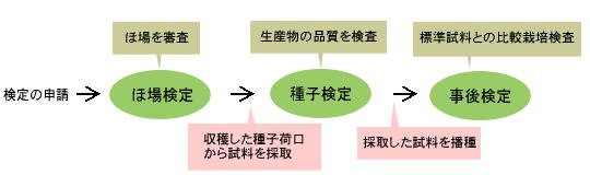 OECD品種証明制度は、OECD(経済協力開発機構)が国際的に標準化した相互証認制度で、作物の種子が国際間で流通する際に、種子が生産された国の指定機関がその種子の品種について真正性を保証するものです。作物のグループ別に下記のスキームに分類されています。