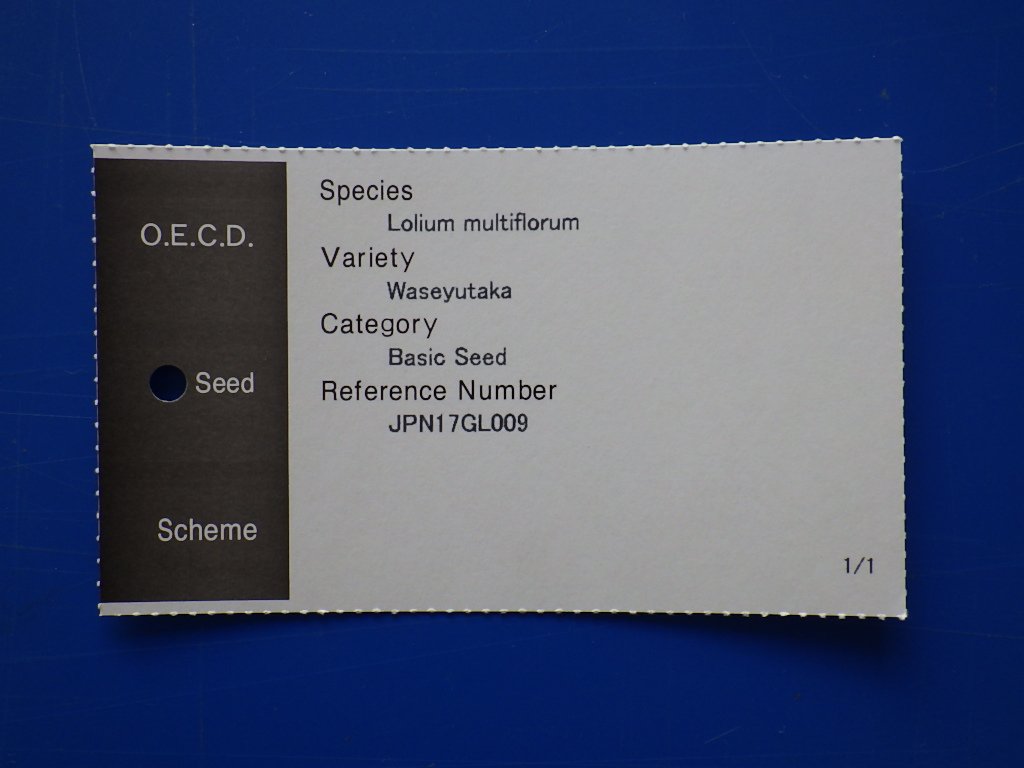 海外へ輸出される飼料作物種子について、各種検定(ほ場検定、種子検定、事後検定)を行い、すべての基準を満たした荷口に品種の真実性を証明するOECDラベルを添付します。