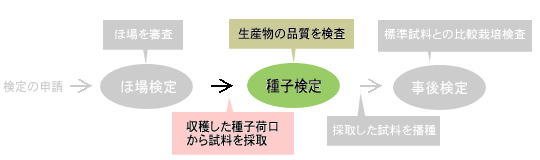 種子生産ほ場からの収穫・精選・梱包を経た種子荷口から試料を採取し、種子の物理的純度(純種子、異種子、きょう雑物の割合)の測定をISTAの「国際種子検査規程」に準じて行います。結果は、ISTA国際種子証明書にて報告します。