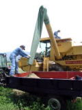 1.圃場にてコンバインから乾燥箱に移し替えます