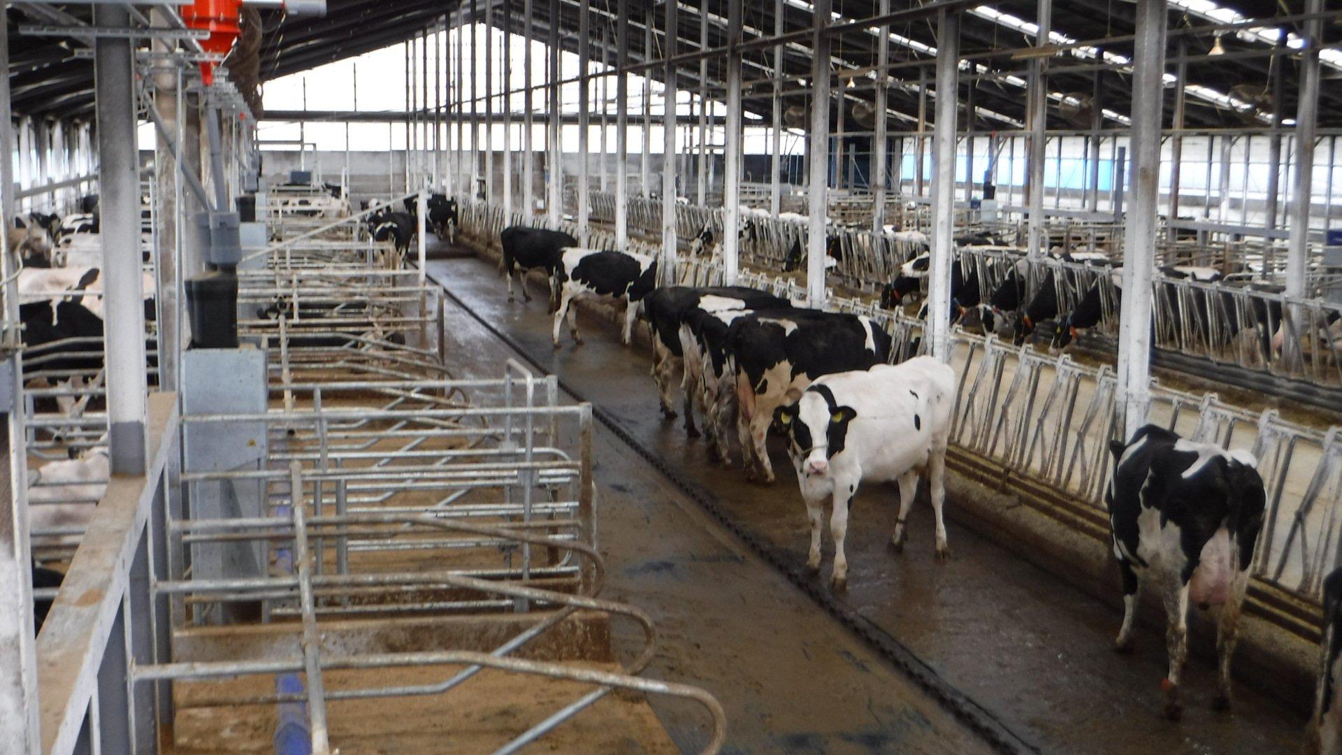 ・搾乳牛舎はフリーストール形式で、搾乳ロボットで約260頭の搾乳が可能です。給餌は、搾乳ロボットや自動給餌器で給与される濃厚飼料の量を除いた濃厚飼料と粗飼料を混合した飼料(PMR)を飼槽で給与しています。