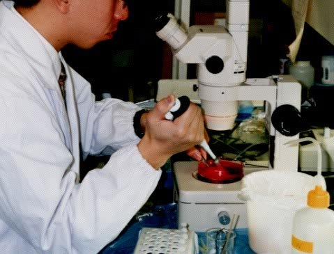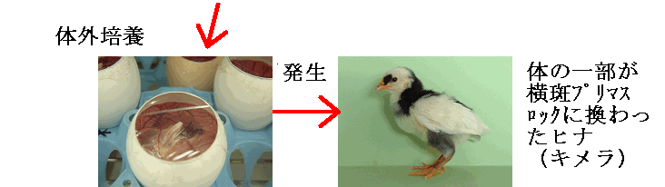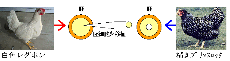 鶏の受精卵から採取した胚盤葉細胞や、鶏胚の血液中から採取した始原生殖細胞を別種の鶏の受精卵に移植し、培養を行うことによって孵化させます。