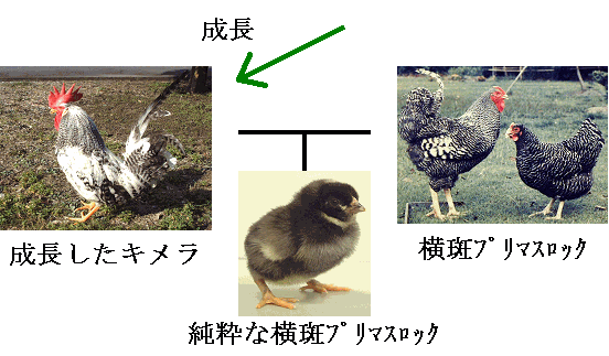成長したキメラに横斑プリマスロックを交配すると、純粋な横斑プリマスロックが発生します。