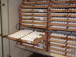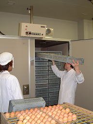 必要な卵が集まったら、孵卵機に種卵を鋭端を下にしてセットします。