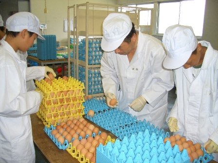 卵の選別作業