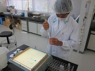 鶏の採血や平板凝集反応検査、グラム染色等を行っていただきましたが、興味深く、熱心に取り組んでいました。加えて、解剖検査の仕事も体験していただきました。