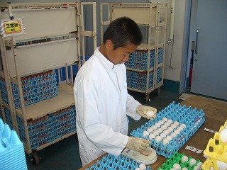 1日目は、オリエンテーション後、鶏卵整理室の仕事を体験していただきました。