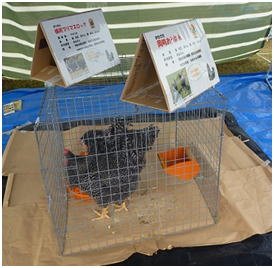 当場は、牧場の業務概要のほか、鶏卵や国産鶏に関するパネルと卵の展示、パネル内容についてのクイズ、当場についてのアンケート(お礼に「岡崎おうはん」を含む当場産の卵をプレゼント)、当場の紹介動画(ヒヨコの発生作業風景)の放映、成鶏(「岡崎おうはん」・アロウカナ・横斑プリマスロック・烏骨鶏)の展示や写生大会を実施しました。