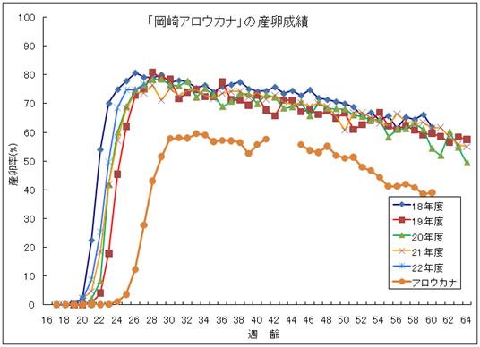 > 「岡崎アロウカナ」の産卵率と産卵成績