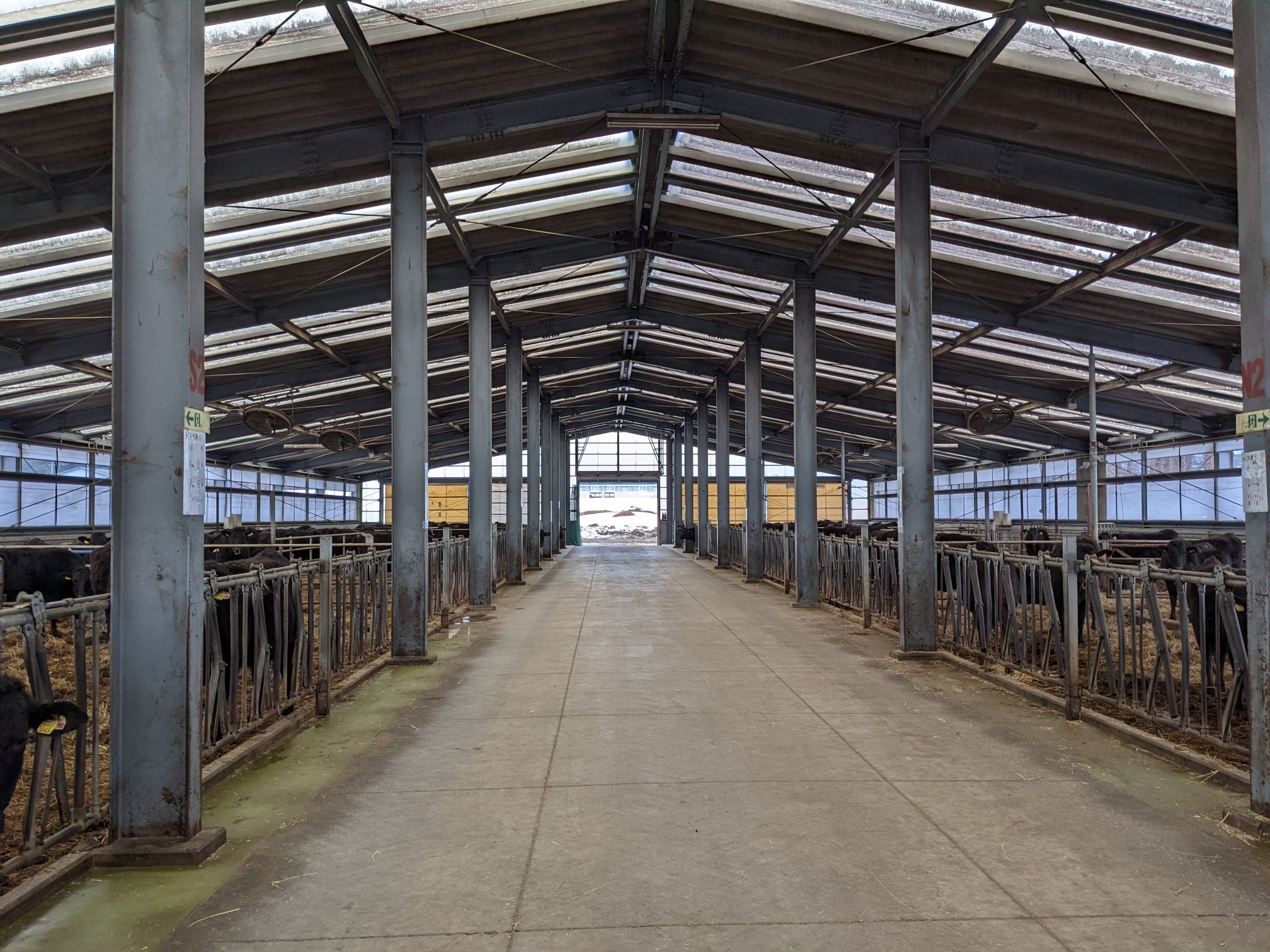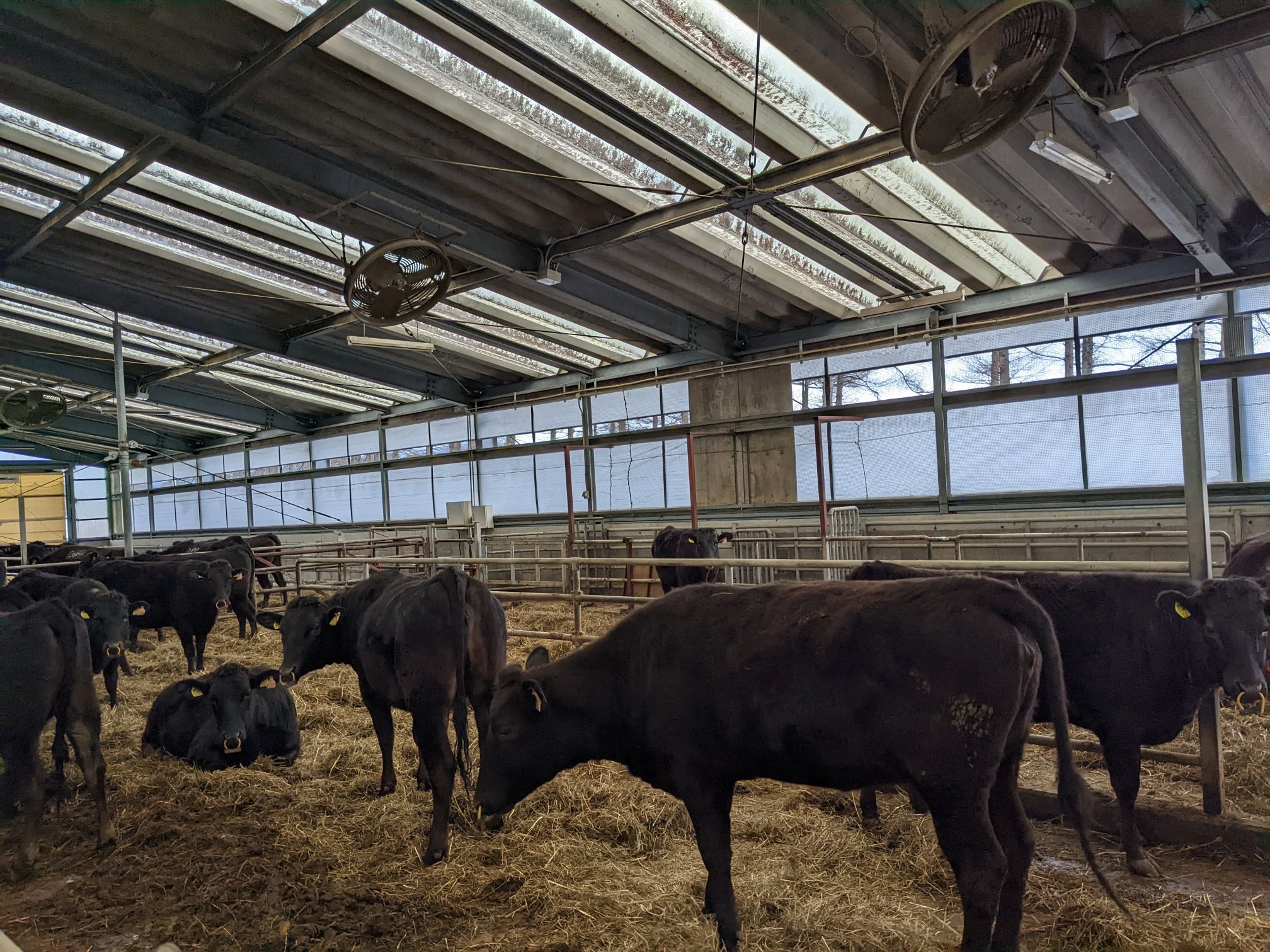 分娩時期になると、分娩牛舎に16個備えられた牛房に、分娩予定日順に牛が収容されていきます。