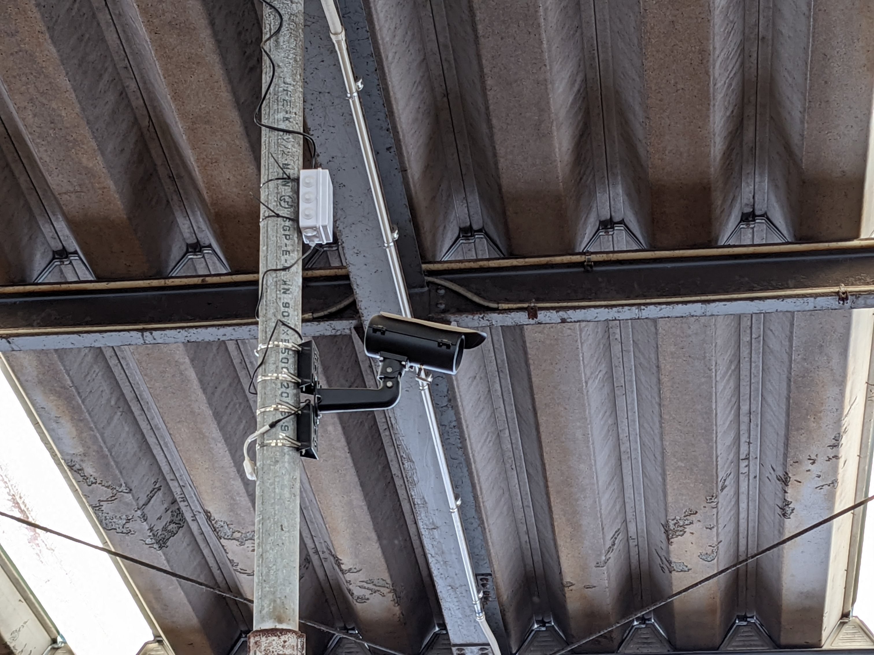 カメラは、牛房間の柱に括り付けて設置しました。