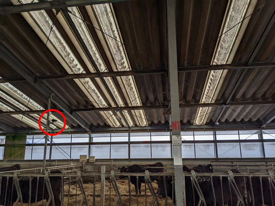 特に①の機能については、繁殖牛舎と分娩牛舎が約50m離れていること、及び牛舎の壁を通過する必要があることを踏まえ、なるべく遠くまで電波を飛ばすことが可能なものを求めた結果、スペック上200m先までWi-Fi電波を飛ばすことが可能なカメラを購入することとしました。