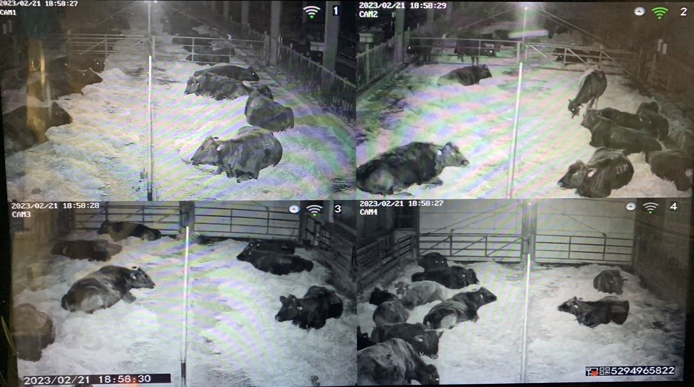 現在、カメラを設置してからおよそ2ヶ月に及ぶ分娩期間を経たところで、カメラの映像により繁殖牛舎における分娩を感知することができた例が数件ありました。