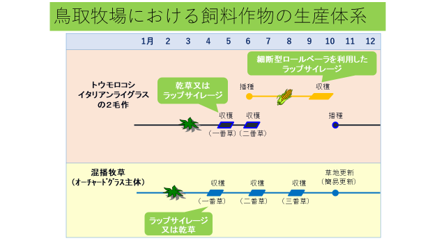オーチャードグラス主体の永年草地や、イタリアンライグラスとトウモロコシの二毛作体系で草地を管理・活用しながら家畜に給与する粗飼料の完全自給に努めています。