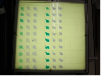 平板凝集反応法における平板上の様子