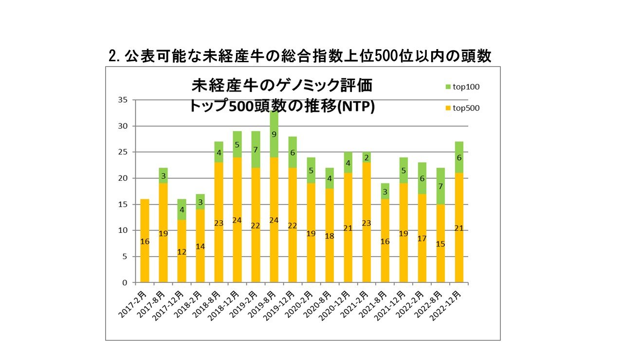 令和5年1月19日に公表された乳用牛評価報告(牛群検定参加牛のうち総合指数上位100位)2022-12月において、当場の「RE ワルシ ノルダウ ストイツク セカンド ET」が16位(前回12位)で掲載され、その他8頭がランクインしました。