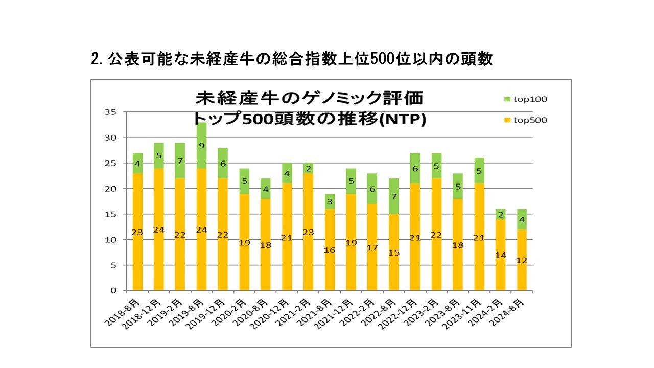 乳用牛 未経産牛(ホルスタイン種)評価結果 2024-8月 NLBC岩手牧場分