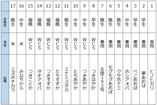 飼料用イネの展示ほを令和4年度に設置しました。17品種について生育状況、特性を比較しました。