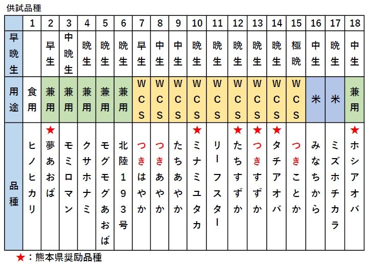 令和6年度の飼料用イネ展示ほ場について、18品種の生育状況、特性を比較しました。