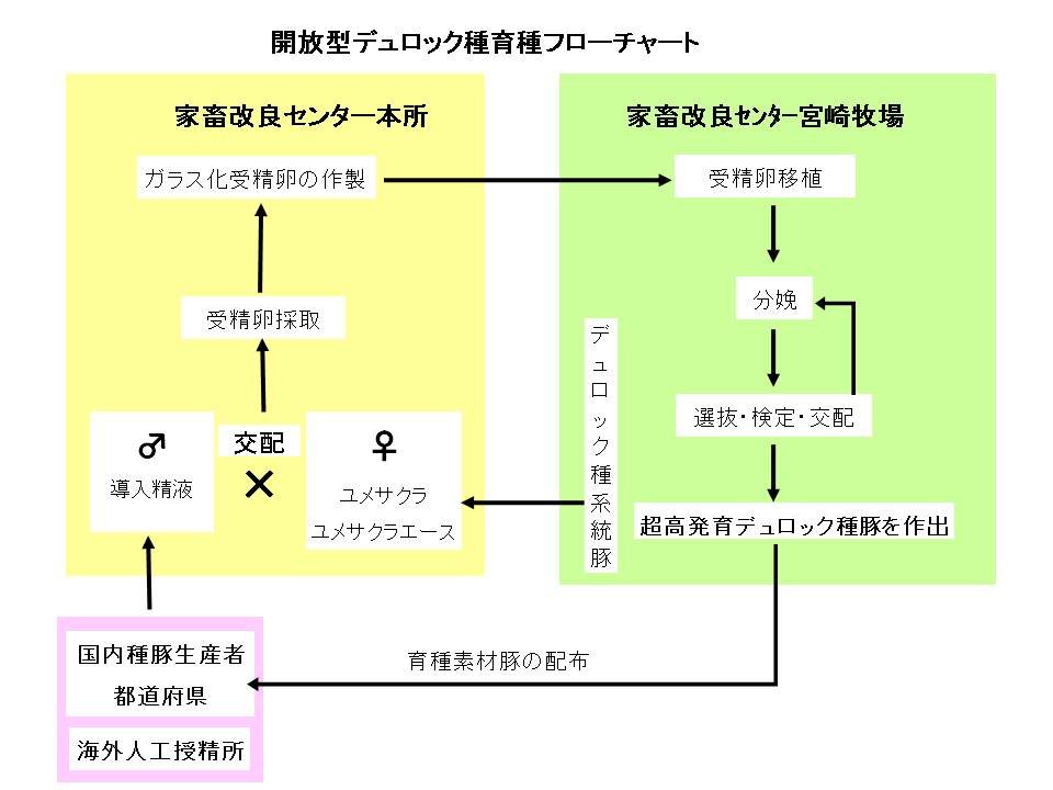 種豚導入は最も衛生的な受精卵で導入します。導入する受精卵は家畜改良センタ-で開発したマイクロボリュームエアクーリング(MVAC)法でガラス化保存しています。
