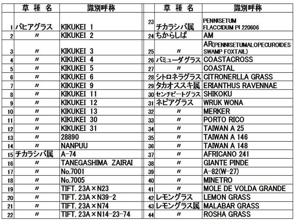 宮崎牧場で生体保存している植物一覧になります。