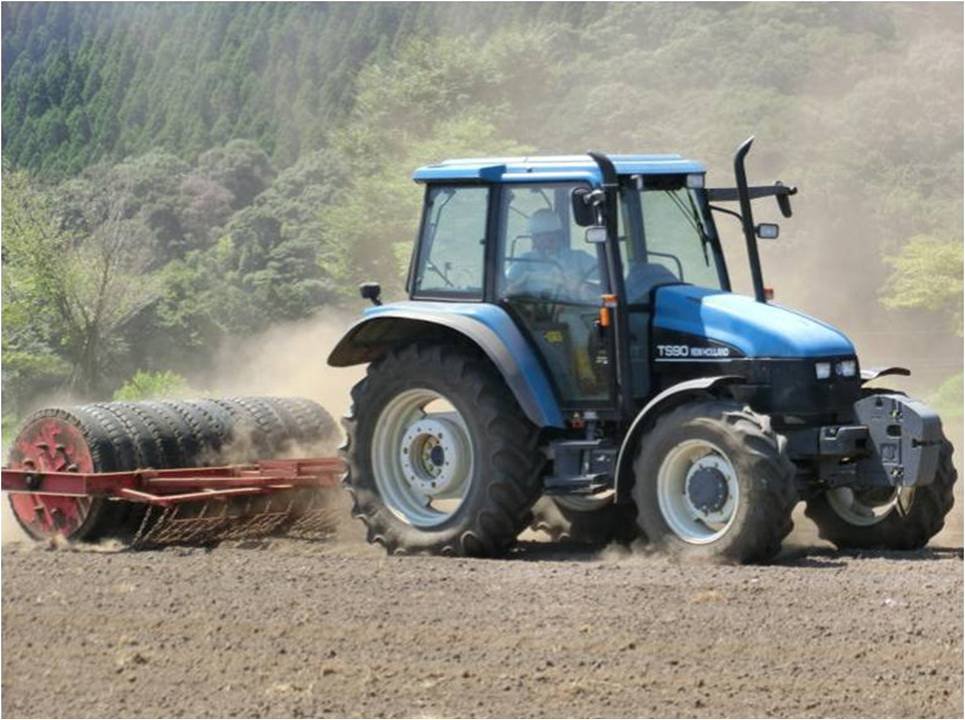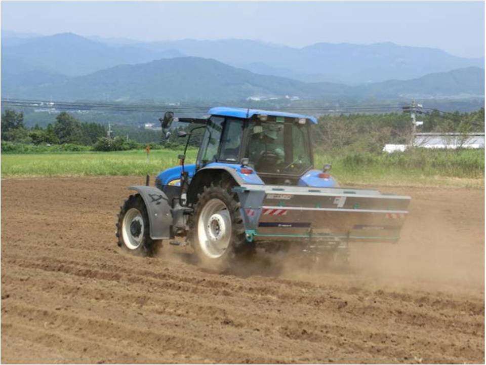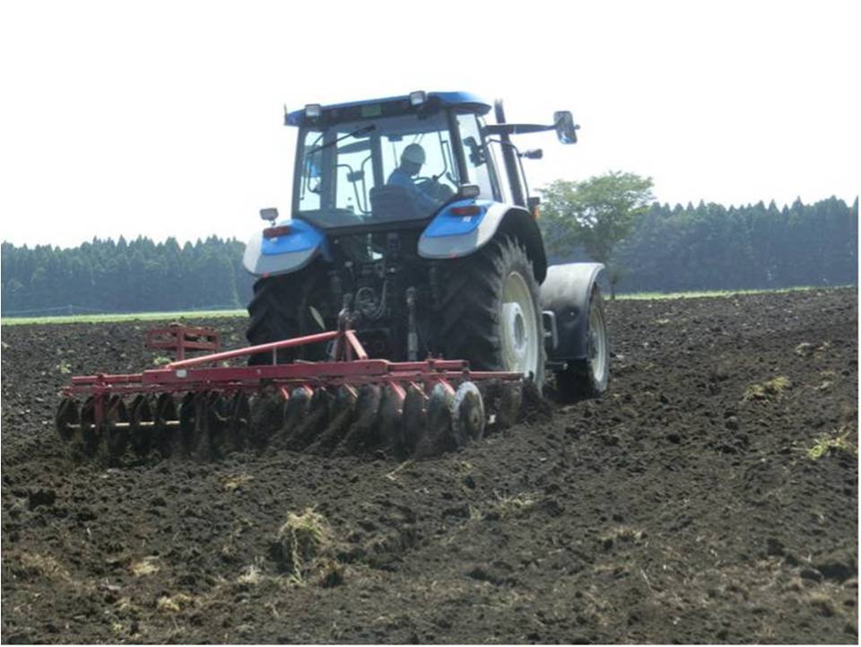 プラウにより、土を起こします(3連プラウリバーシブルタイプ)。