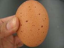 写真のような、卵殻に見られる茶色い斑点やざらつきをチェックします。