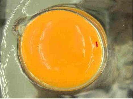 ・卵黄膜物質が固まって卵黄の表面に付着。