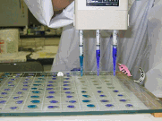 ・8連分注器を用いて3種類の診断液を同時に30検体以上連続して分注。