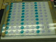 ・30検体(最大33検体、99穴)を一度に攪拌できるよう、検査版の区画の大きさに合わせた攪拌棒を配置した攪拌機を作成。