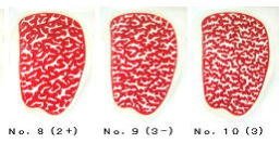 現在、流通するときの肉質の判定は、(社)日本食肉格付協会の「格付」によって行われています。(用語解説の「格付(かくつけ)」の項参照)