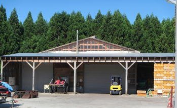 乾燥・貯蔵施設の外観。ここでニンニクの乾燥・貯蔵・調製・袋詰めを行う。