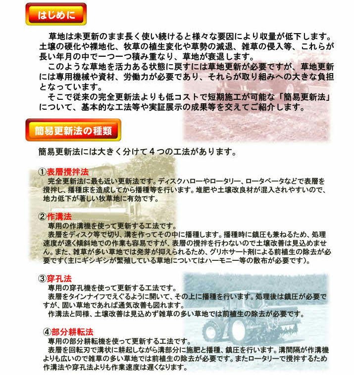 > 簡易更新法の紹介(簡易更新技術で草地に活力を!)